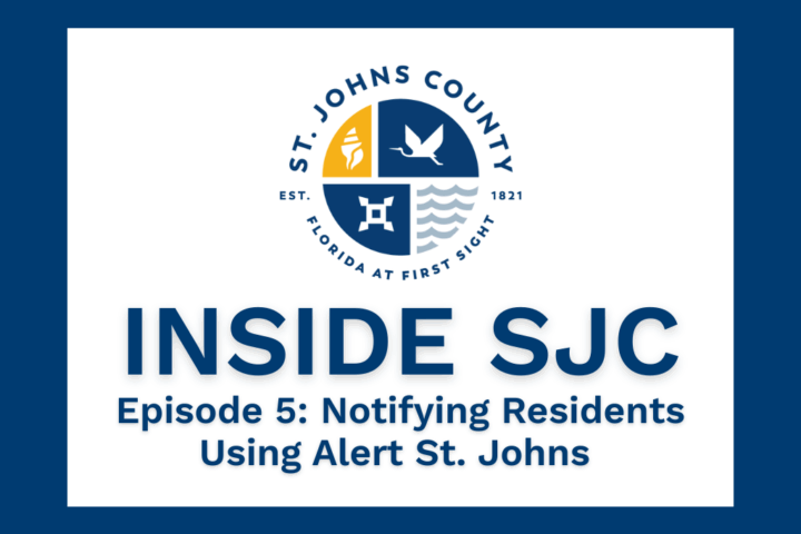 St. Johns County launched Inside SJC Episode 5: Notifying Residents Using Alert St. Johns. This episode gives viewers the opportunity to learn how the county can notify residents in real-time about possible threats to public safety using Alert St. Johns. Anything from severe weather, unexpected road closures, water advisories, missing persons, or evacuations; this emergency notification system allows county staff and officials to provide critical information by whatever method you specify (home phone, mobile device, email, text, etc.).