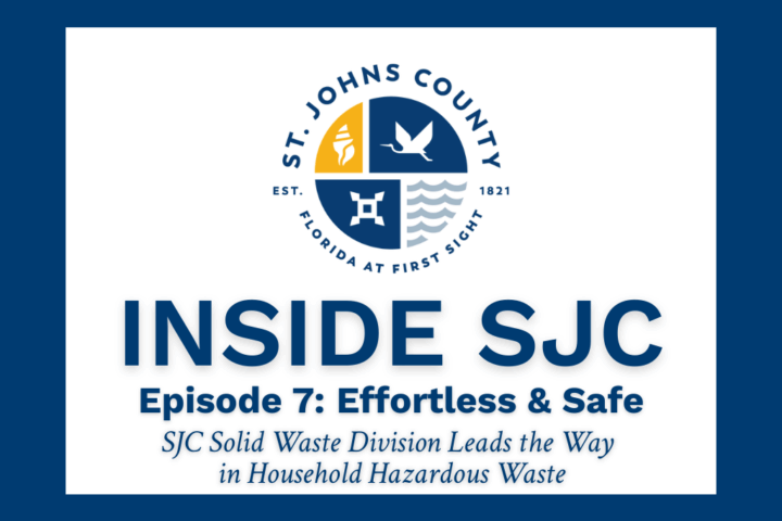 St. Johns County launched Inside SJC Episode 7: Effortless and Safe, SJC Solid Waste Division Leads the Way in Household Hazardous Waste. This episode gives viewers an inside look at how the St. Johns County Solid Waste Division efficiently manages the proper disposal of household hazardous waste. With drop-off centers at both the Tillman Ridge and Stratton Road Transfer Stations, items such as chemicals, batteries, electronics and fuel are collected and disposed of properly. This is important to protect the environment, the safety of waste workers, and for public health.